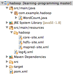 <project xmlns="http://maven.apache.org/POM/4.0.0" xmlns:xsi="http://www.w3.org/2001/XMLSchema-instance" xsi:schemaLocation="http://maven.apache.org/POM/4.0.0 http://maven.apache.org/xsd/maven-4.0.0.xsd"> <modelVersion>4.0.0</modelVersion> <groupId>com.example</groupId> <artifactId>hadoop</artifactId> <version>0.0.1</version> <name>hadoop mapreduce</name> <description>test hadoop-2.7.1 mapreduce.</description> <build> <plugins> <plugin> <groupId>org.apache.maven.plugins</groupId> <artifactId>maven-compiler-plugin</artifactId> <version>3.5</version> <configuration> <source>1.8</source> <target>1.8</target> </configuration> </plugin> <plugin> <groupId>org.codehaus.mojo</groupId> <artifactId>exec-maven-plugin</artifactId> <version>1.2.1</version> </plugin> </plugins> </build> <properties> <hadoop.version>2.7.1</hadoop.version> </properties> <dependencies> <dependency> <groupId>org.apache.hadoop</groupId> <artifactId>hadoop-hdfs</artifactId> <version>${hadoop.version}</version> </dependency> <dependency> <groupId>org.apache.hadoop</groupId> <artifactId>hadoop-common</artifactId> <version>${hadoop.version}</version> </dependency> <dependency> <groupId>org.apache.hadoop</groupId> <artifactId>hadoop-mapreduce-client-common</artifactId> <version>${hadoop.version}</version> </dependency> </dependencies></project> |