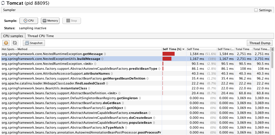 然后再查看jvm的CPU主要在哪些方法调用上消耗了大量资源: