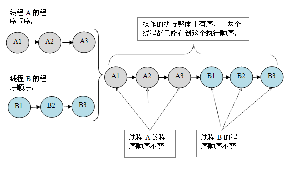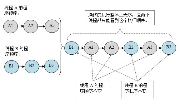 - 单线程程序。单线程程序不会出现内存可见性问题。编译器,runtime 和处理器会共同确保单线程程序的执行结果与该程序在顺序一致性模型中的执行结果相同。
