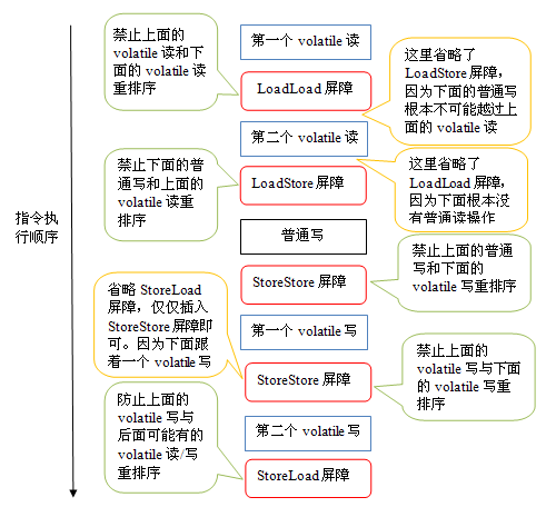 上述的 1 属于编译器重排序,2 和 3 属于处理器重排序。这些重排序都可能会导致多线程程序出现内存可见性问题。对于编译器,JMM 的编译器重排序规则会禁止特定类型的编译器重排序(不是所有的编译器重排序都要禁止)。对于处理器重排序,JMM 的处理器重排序规则会要求 java 编译器在生成指令序列时,插入特定类型的内存屏障(memory barriers,intel 称之为 memory fence)指令,通过内存屏障指令来禁止特定类型的处理器重排序(不是所有的处理器重排序都要禁止)。