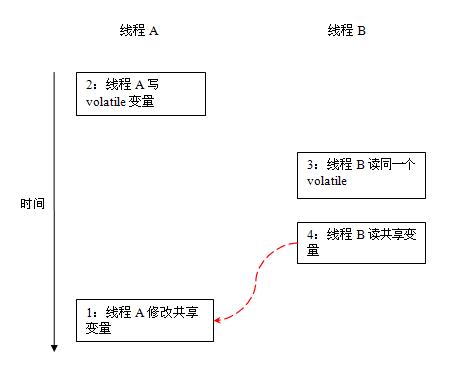 - 然后,线程 B 到主内存中去读取线程 A 之前已更新过的共享变量。