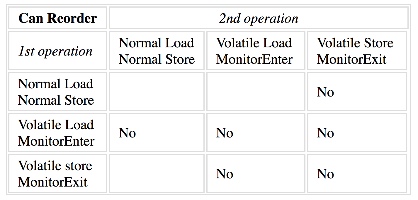 JSR-133严格限制 volatile 变量与普通变量的重排序,使 volatile 的写-读和锁的释放/获取具有相同的内存语义。 - 增强 final 的内存语义。在旧内存模型中,多次读取同一个 final 变量的值可能会不相同。为此,