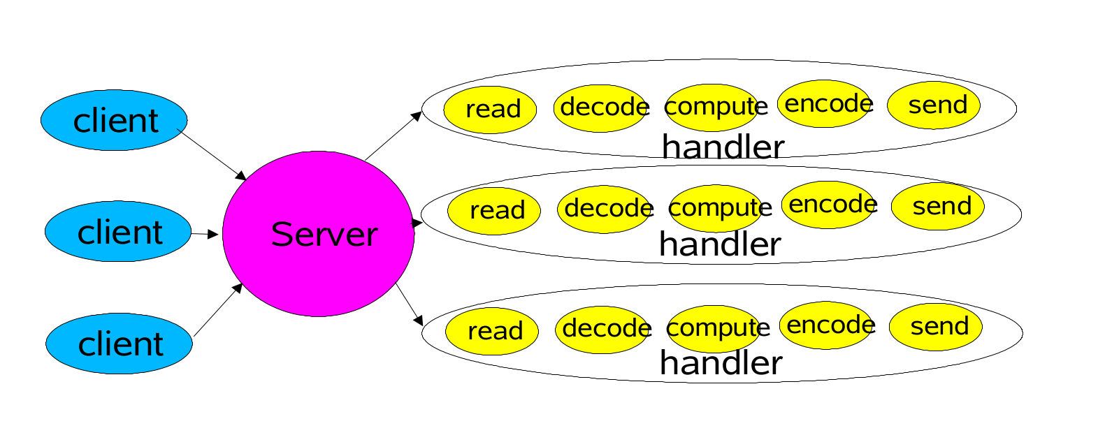 - Handlers perform non-blocking actions