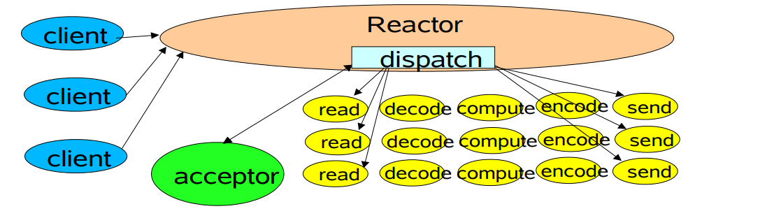 class Handler implements Runnable { // uses util.concurrent thread pool static PooledExecutor pool = new PooledExecutor(...); static final int PROCESSING = 3; // ... synchronized void read() { // ... socket.read(input); if (inputIsComplete()) { state = PROCESSING; pool.execute(new Processer()); } } synchronized void processAndHandOff() { process(); state = SENDING; // or rebind attachment sk.interest(SelectionKey.OP_WRITE); } class Processer implements Runnable { public void run() { processAndHandOff(); } }} |