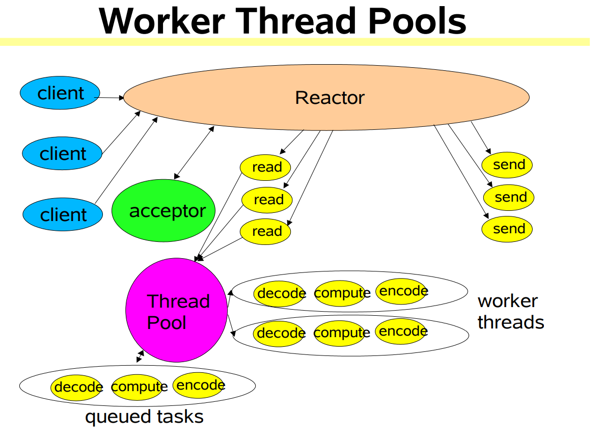 - Normally need many fewer threads than clientsWorker Thread Pools