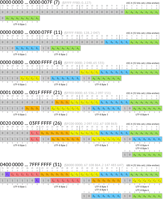 | 0001 0000-0010 FFFF | 11110xxx 10xxxxxx 10xxxxxx 10xxxxxx |