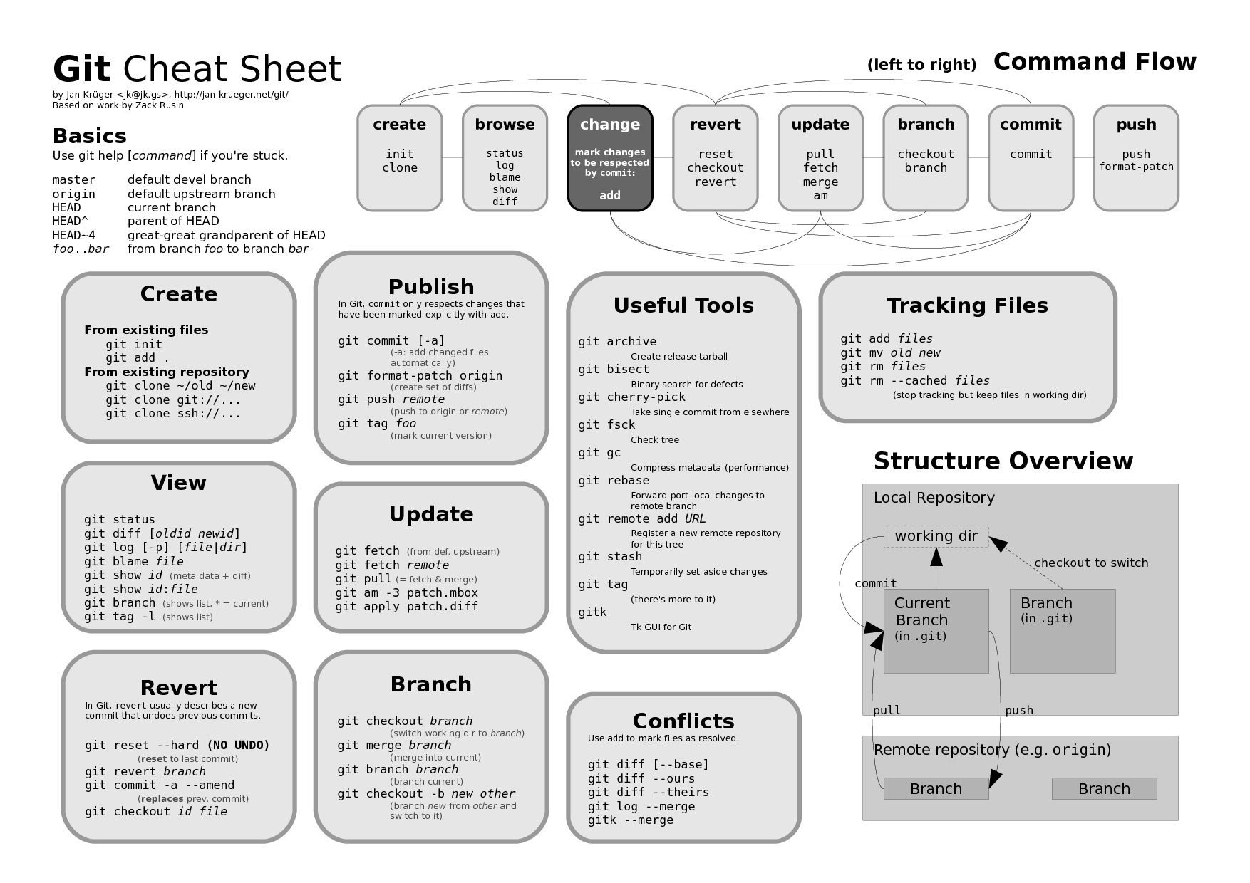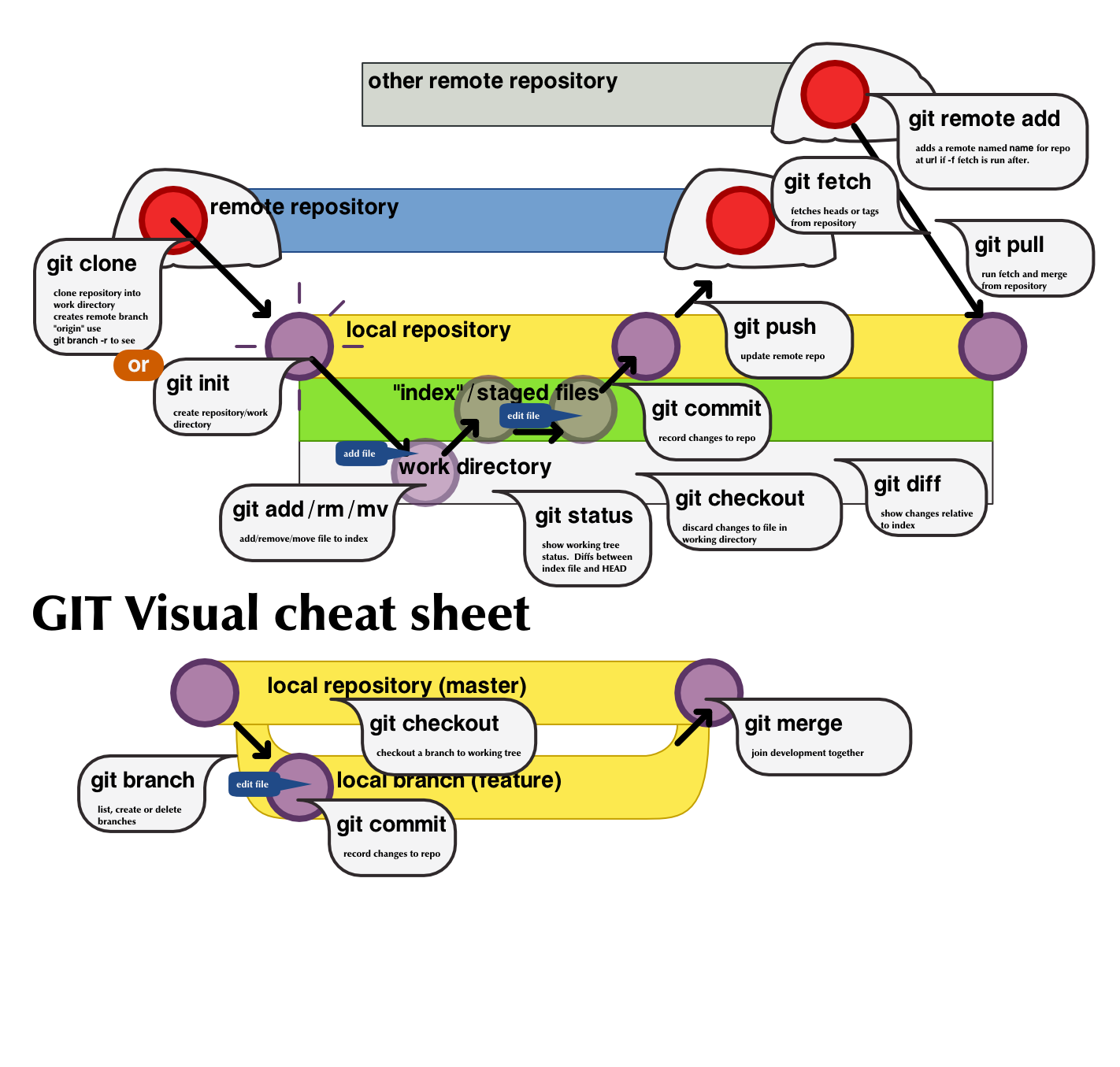 git cheatsheets Posted on 2015-12-07 | In linux 版本一 版本二 版本三 版本四 版本五 版本六 版本七 版本八 版本九 GIT WORKSPACE and LOCAL REPOSITORY GIT DATA TRANSPORT COMMANDS