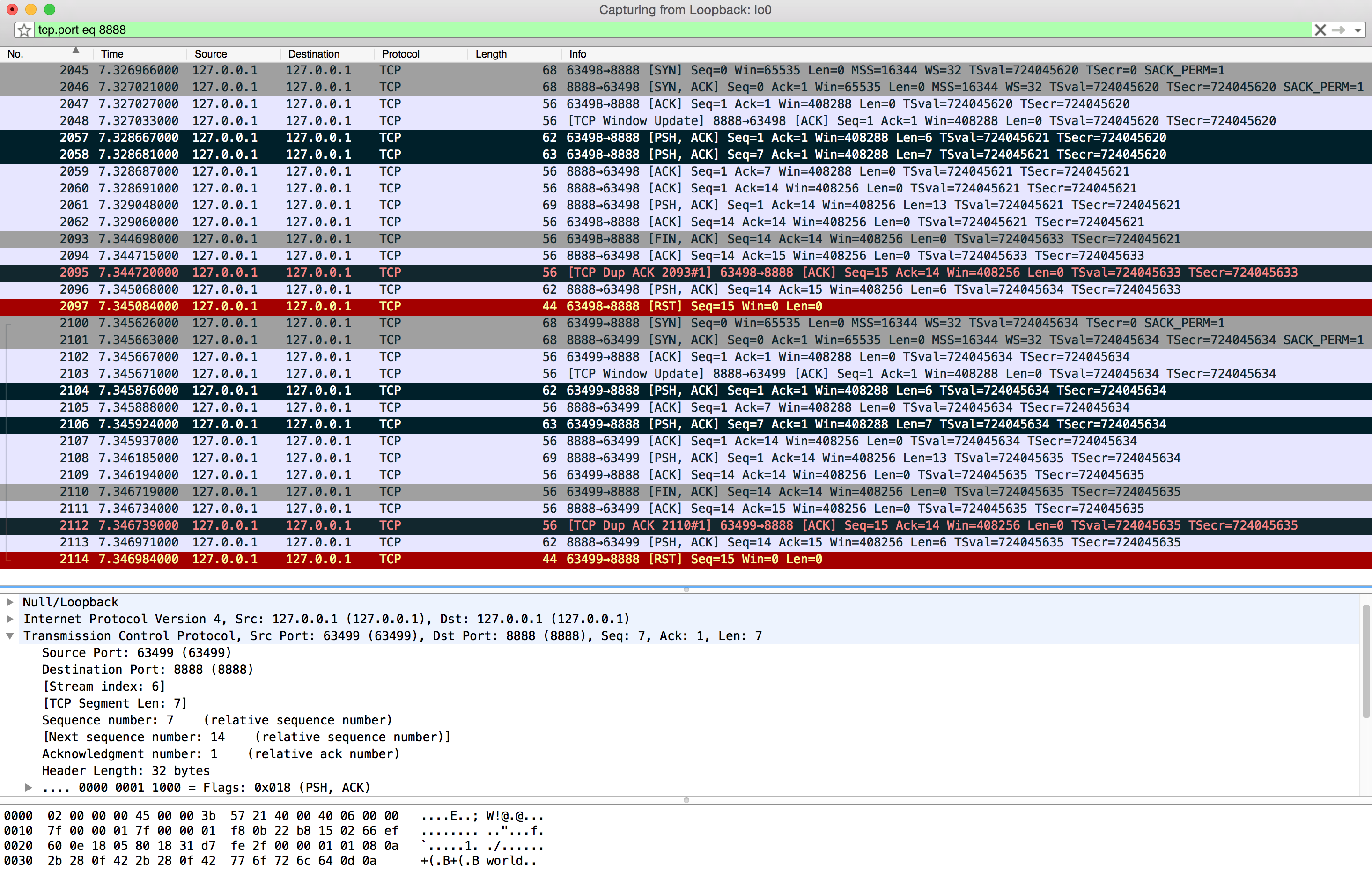上面测试代码中Hello是 6 个字节,world\r\n是 7 个字节,如果是 13 个字节一起发送出去了,那就是这 2 个数据包被一起发送给服务端了。