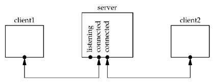 Sometime later a second client establishes a connection and we have the scenario shown below: