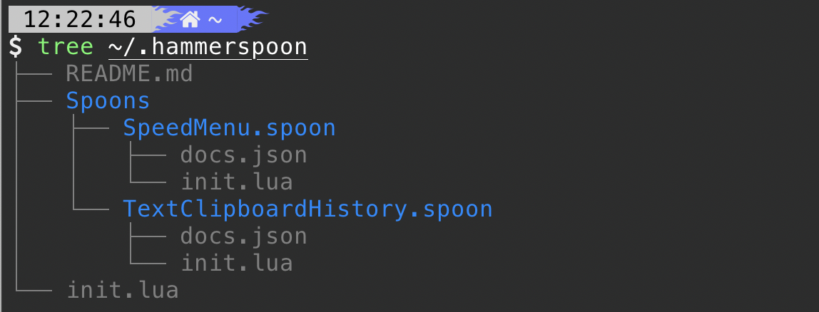 配置文件为 ~/.hammerspoon/init.lua,插件安装目录 ~/.hammerspoon/Spoons。